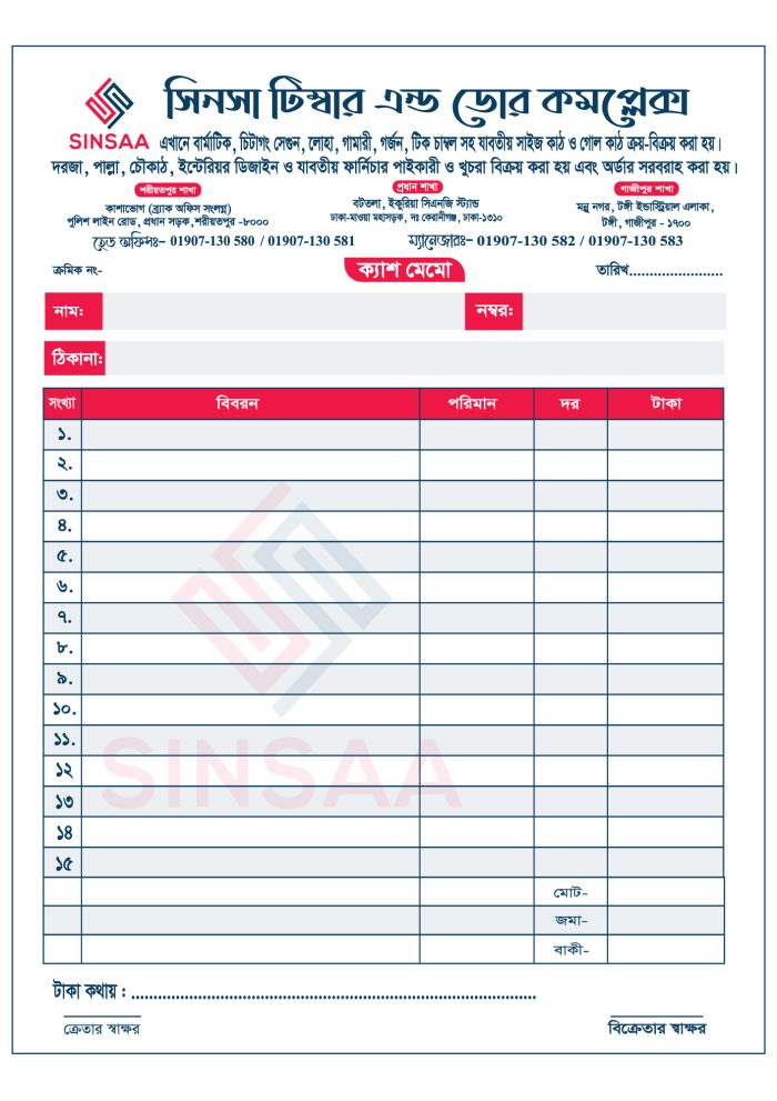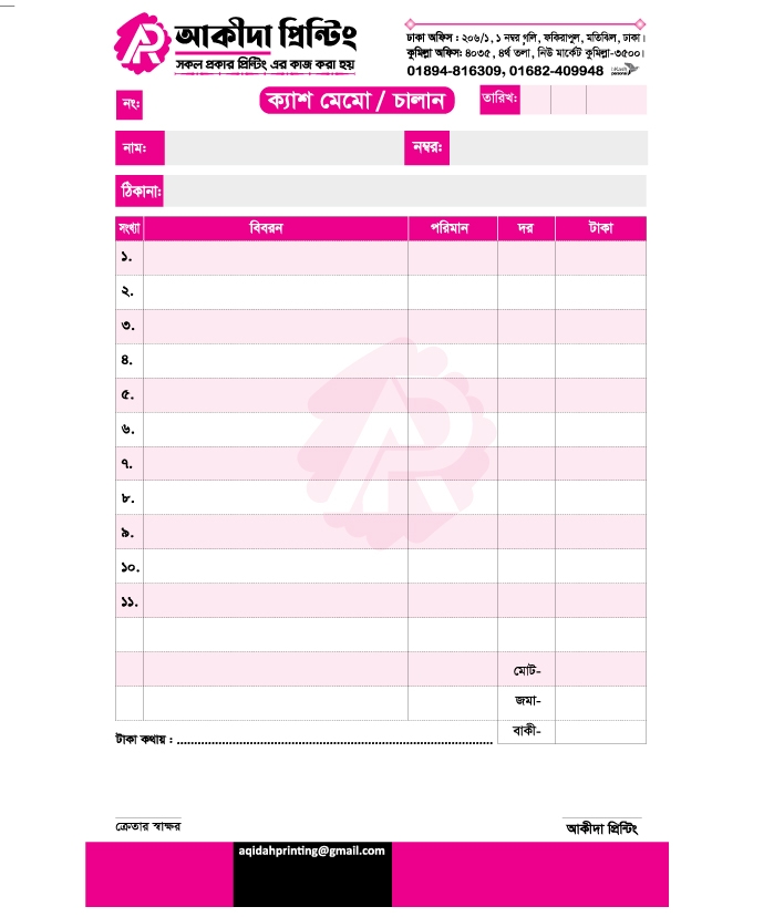Cash Memo-ক্যাশ মেমো-Auto Carbon Copy, 2 Layer.